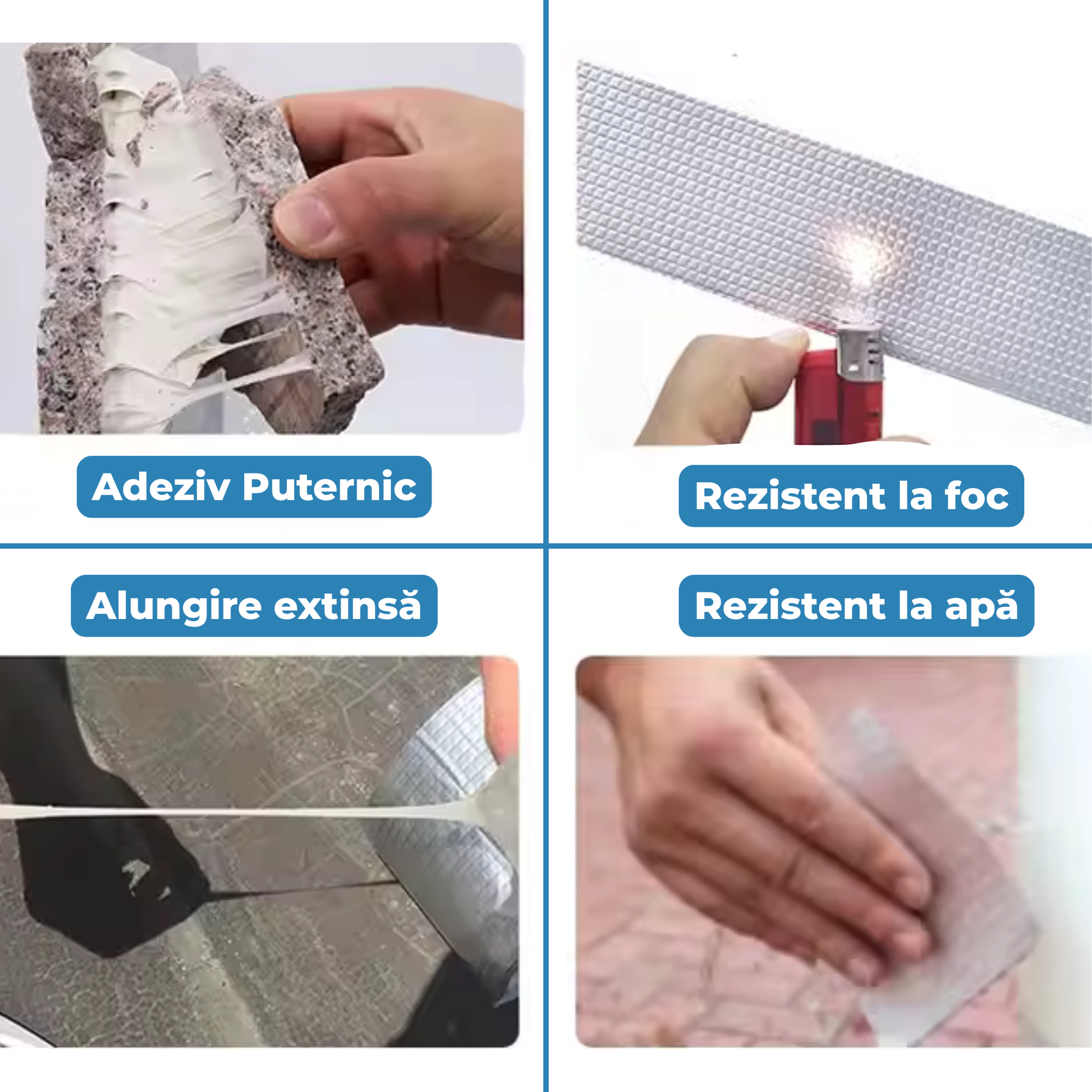 Banda Adezivă oferă rezistență maximă în utilizare pentru reparații rapide și fără bătaie de cap în momentele critice. Banda de etansare are un substrat de polipropilenă orientat în două direcții , cu adeziv din rășină acrilică care se rupe ușor în fâșii și se îndepărtează curat.